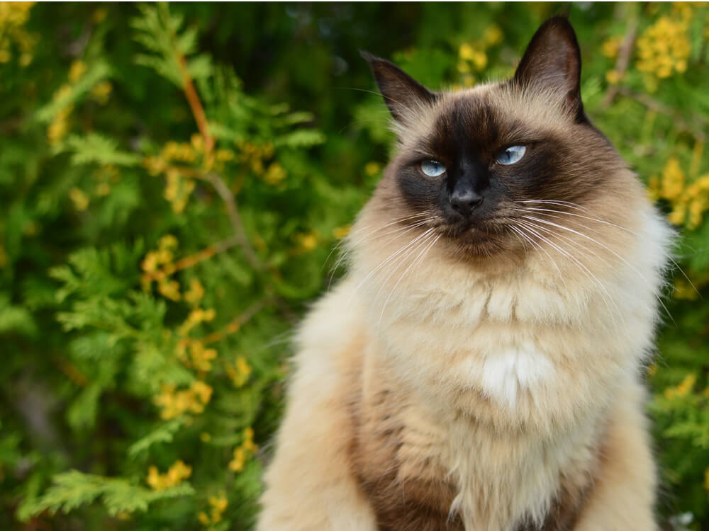 Finely boned and elegant, this cat‘s medium-sized body is lithe and very graceful. Its wedge-shaped head is of a nice proportion and has large ears that can be tufted or non-tufted. Its eyes are rather slanted in that distinctly Oriental style and are always blue, although the shade may vary. Its face has a “mask” of colouring similar to that of the Siamese.