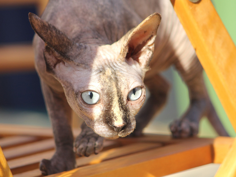 The Sphynx, because it lacks the protection of a coat, must not be exposed to the elements. As this cat easily burns under sun light, it must not be left outdoors for long (even when wearing sunblock). As such, it should be kept as an indoor cat.