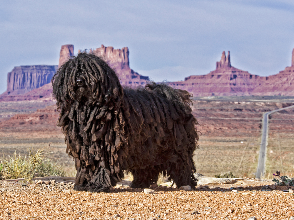 When it arrived in Hungary, the Puli herded livestock through difficult terrains, usually working alongside the much larger livestock guardian dog called the Komondor. The two worked hand in hand to drive away wolves and other predators. The breed’s thick, corded coat provided protection from the harsh weather and predator attacks.