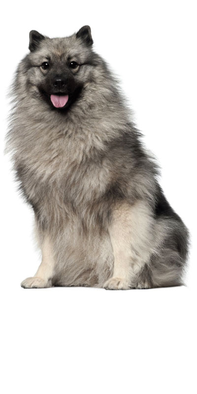 The Keeshond is a Spitz-type dog that boasts of a plush and waterproof double coat comprising of a long, harsh and straight outer coat and a soft woolly undercoat. The breed comes in a mixture of grey, black and cream. All shades of grey are acceptable.